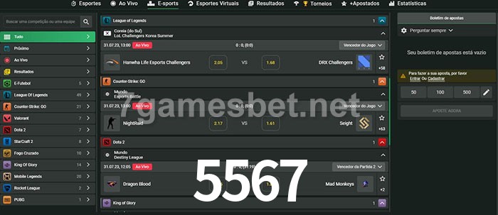 O 5567 oferece uma grande seleção de opções de apostas em e-sports com probabilidades competitivas